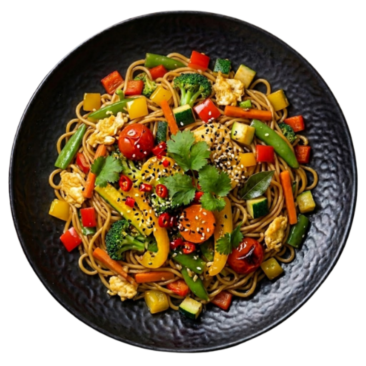 Gebr. Nudeln mit verschiedenem Gemüse und Eier