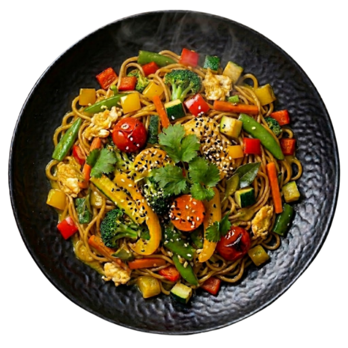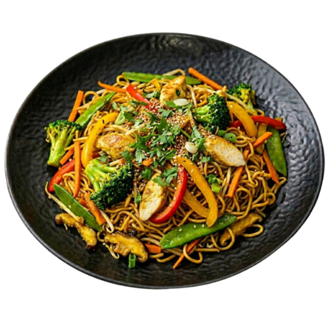 Gebr. Nudeln mit Hühnerfilet, Gemüse und Curry