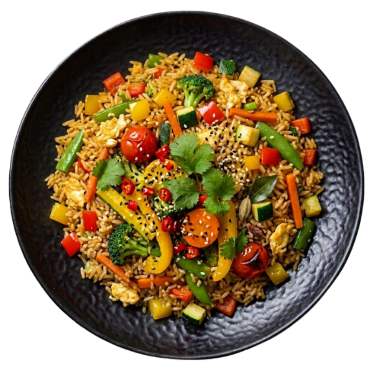 Gebr. Reis mit verschiedenem Gemüse und Eier