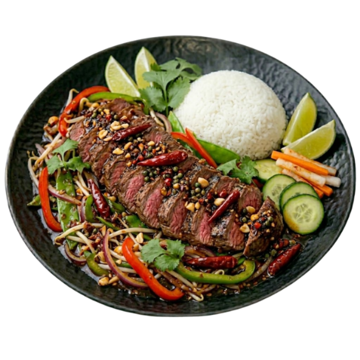 Rinderfilet mit rot-Thai-Curry (scharf)