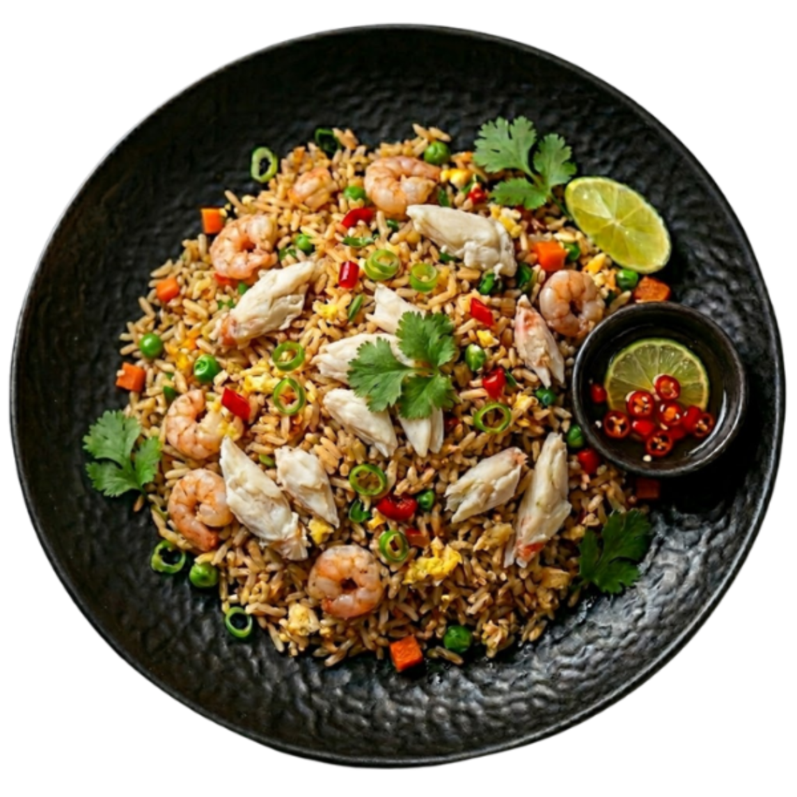 Gebr. Reis mit Krabben, Gemüse und Eier