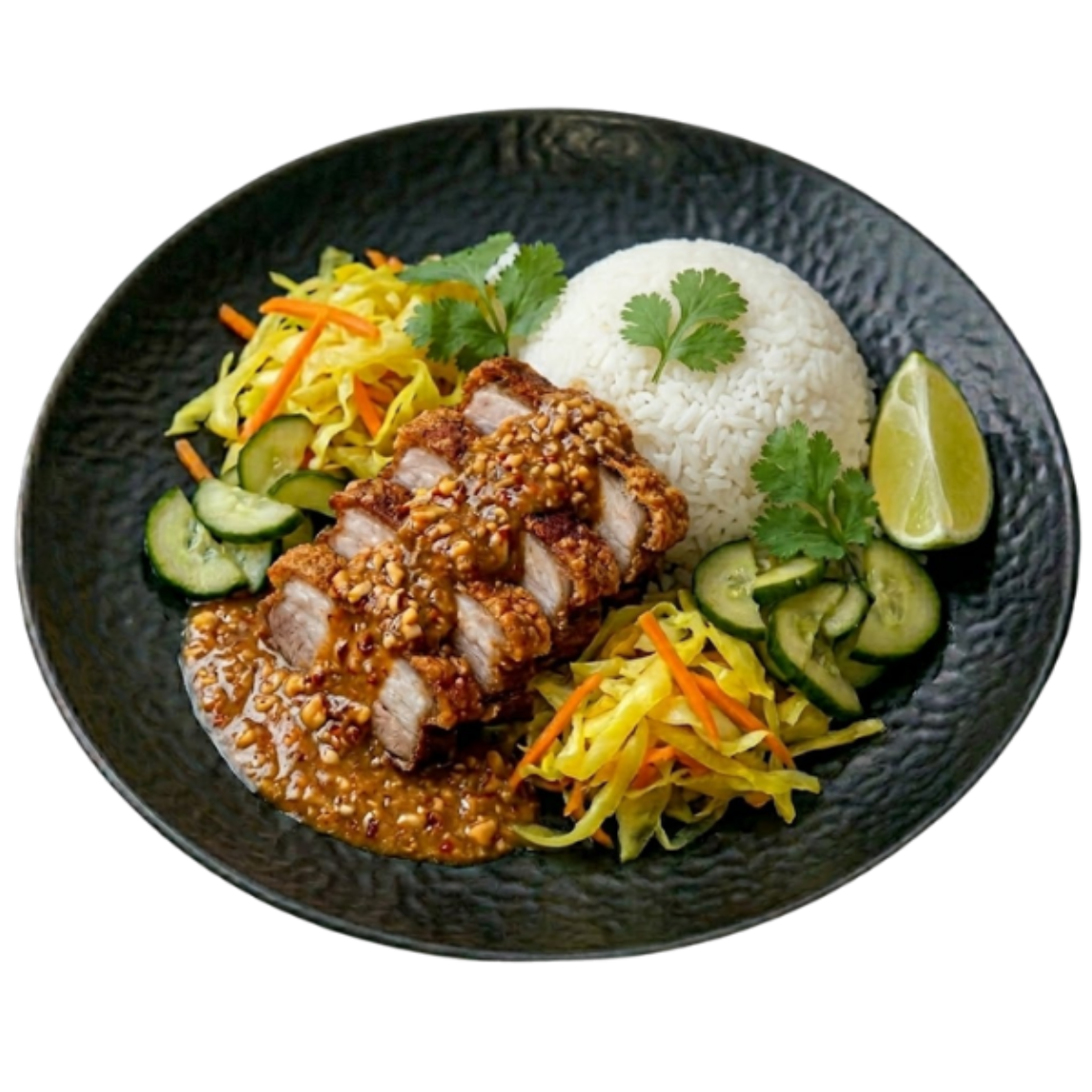 Babi Pangang paniert mit Aca und Erdnuß-Chili-Sauce