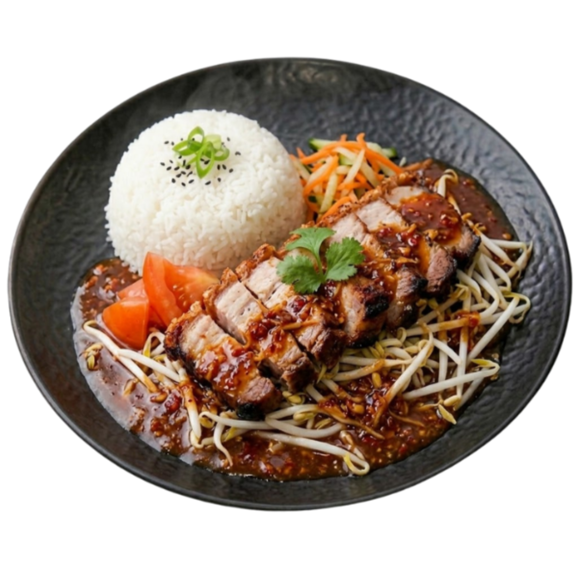 Babi Pangang gebr. Schweinefleisch mit Sojakeimen und pikanter Sauce