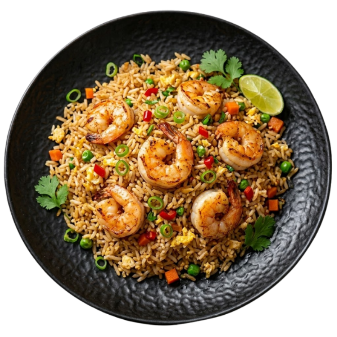 Gebr. Reis mit Garnelen, Gemüse und Eier