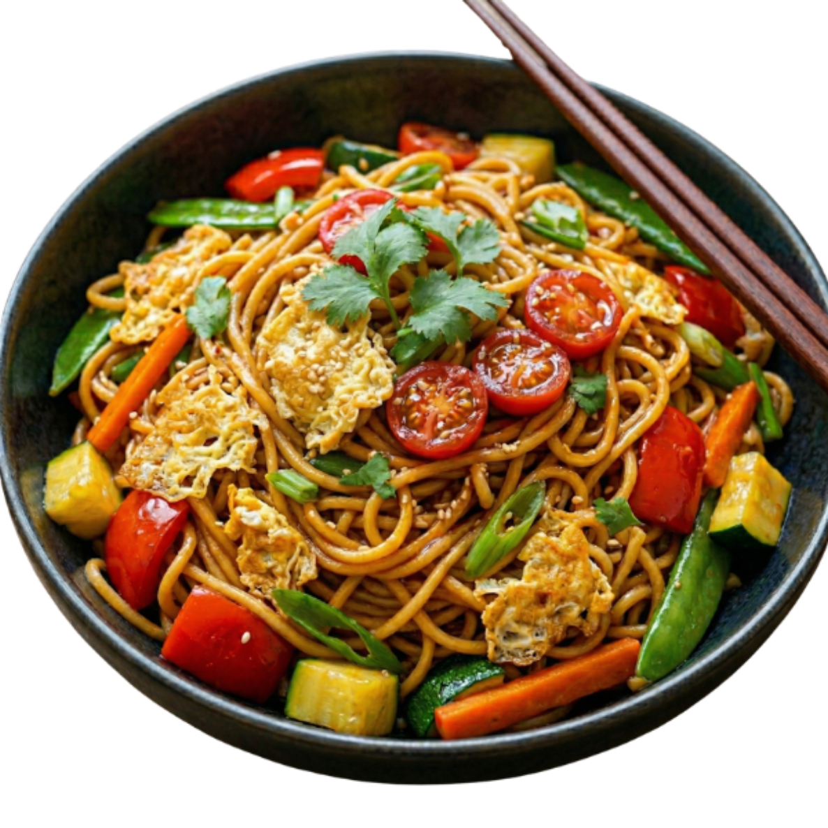 Gebr. Nudeln mit Gemüse und Süß-Sauer-Sauce